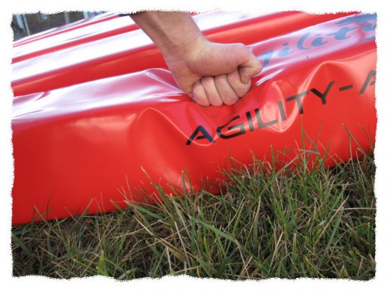 Er ist komplett aus Schaumstoff mit Plane bezogen. Die Nähte sind verschweißt, um den Schaumstoff vor Nässe zu schützen.